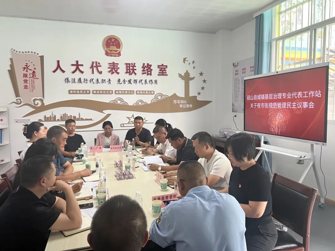 图为砚山基层治理代表工作站专业代表商讨夜市解决方案