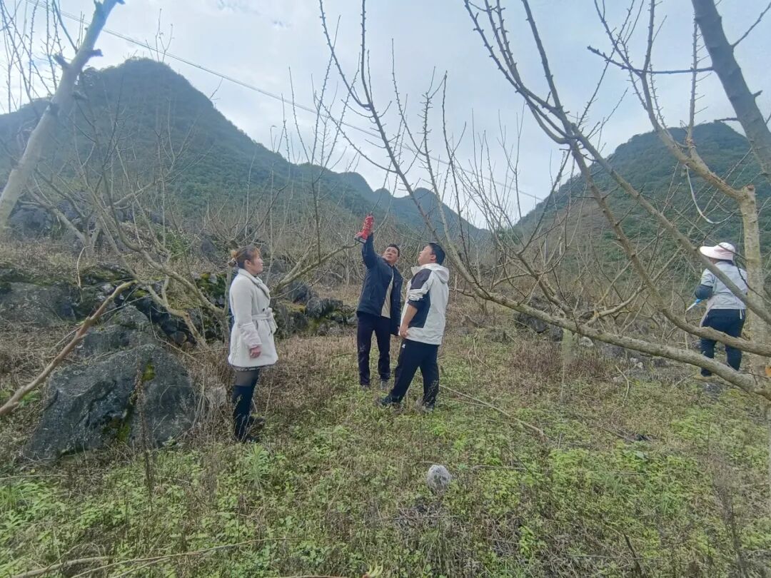 吴永华为群众找产业的步伐从未停歇。2021年,他看准蜂糖李的市场前景,推动成立股份经济合作社,引进2000多亩蜂糖李苗。如今,昔日的石漠化荒山已绿意盎然,果树陆续进入盛果期。“冬天正是剪枝、施基肥的好时候,永华带着我们给果树‘舒筋活血’,剪除病虫枝、干枯枝,施足有机肥,来年才能结出更多好果子。”正在果园里进行管护作业的娄方勇,手里的剪枝剪“咔嚓”作响,“在家门口打工,一天能挣80块,还能照顾老人孩子,日子越来越有奔头了!”这项产业每年带动2000多人次务工,为村民增收超40万元,即便是冬季管护期,也能让大家有稳定收入。