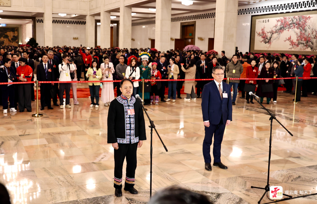 在滇全国人大代表农加贵(左)亮相代表通道。 陈飞 摄