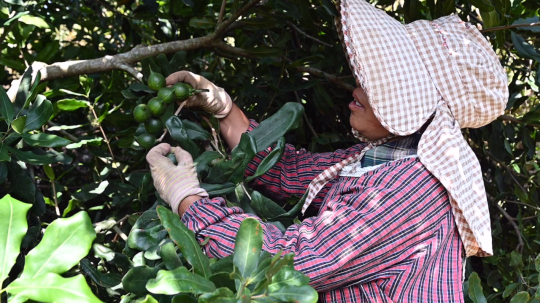 时间回溯到2017年,一次偶然的机会,陶云国听闻了澳洲坚果的大名。这种源自澳大利亚的“干果皇后”,果仁油润、奶香浓郁,在国际市场上供不应求。“咱们夹寒箐的气候、土壤,跟它原产地差不了多少,能不能种?”这个念头像一颗种子,在他心里扎了根。