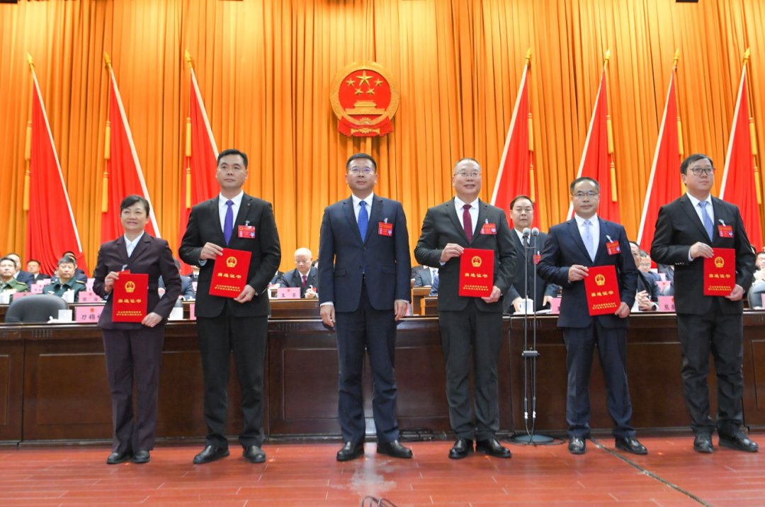 赵国良为新当选的同志颁发当选证书。随后,举行了宪法宣誓仪式,当选人代表作了任职承诺。